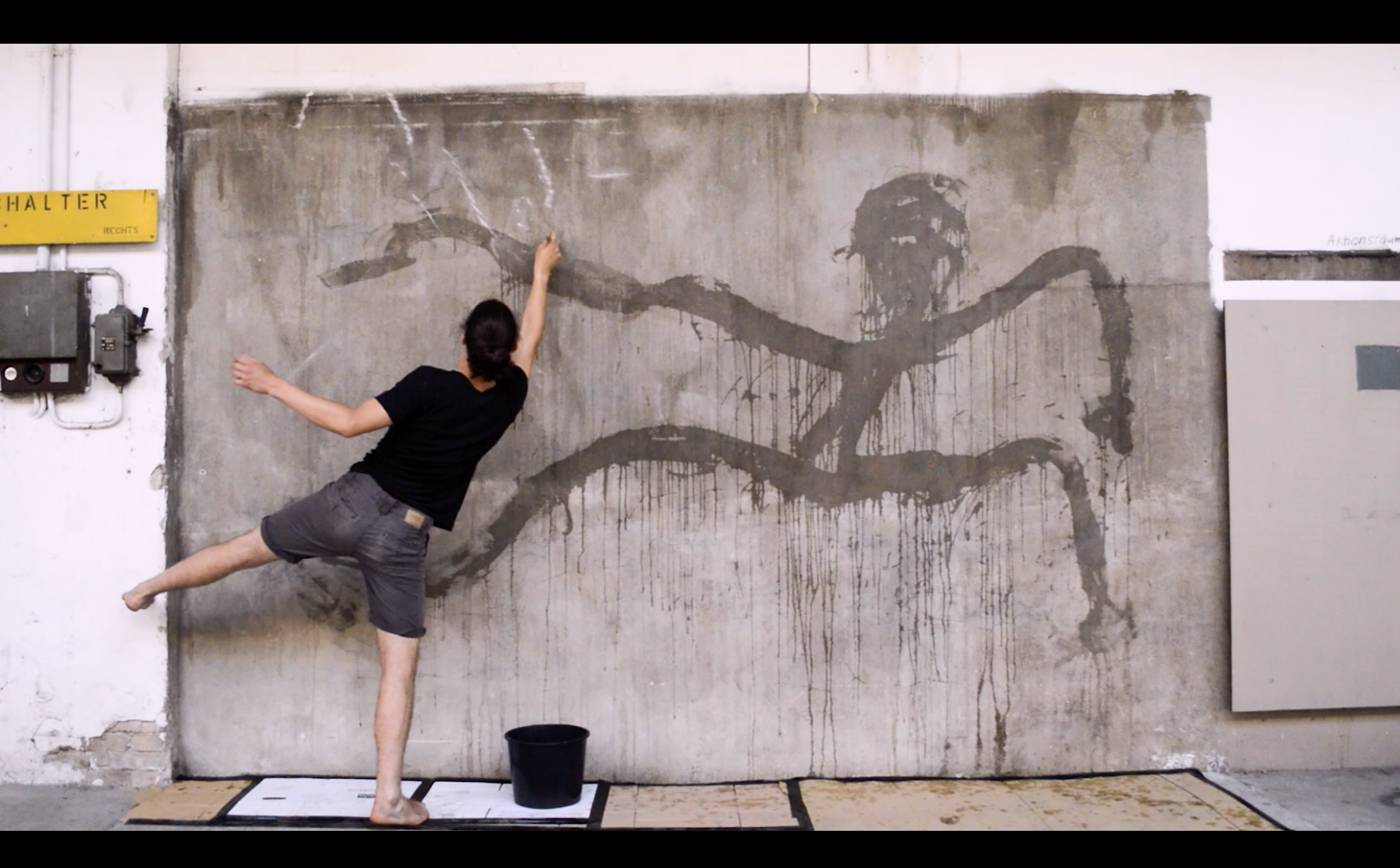 A music video project for Fanny Anderegg’s band, L’Horée. I developed a performance in which I paint repeatedly on the wall throughout the duration of the song. First comes the water, which also generates movement as it evaporates. Then comes the paint, allowing me to fix my little figures onto the wall.