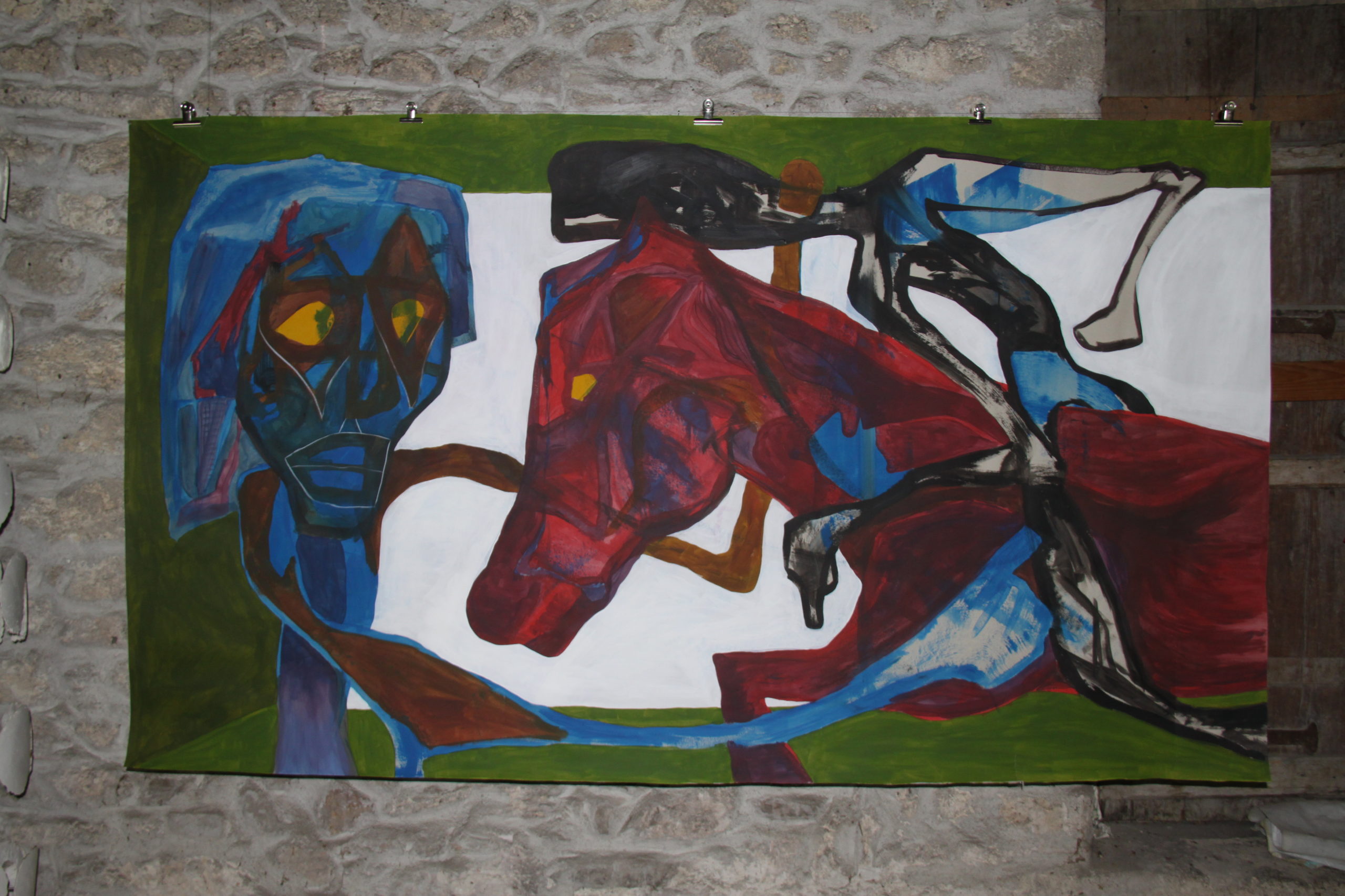 This project explores the complex, sometimes conflicting relationship humans have with natural environments. Through a palette dominated by red, green, and blue, each painting reflects our tensions and contradictions, as well as our hopes. Red, the color of blood and vitality, dialogues with green, symbolizing a nature that we shape or jeopardize. Blue appears as a call for wisdom and calm, a promise of harmony regained with our planet.